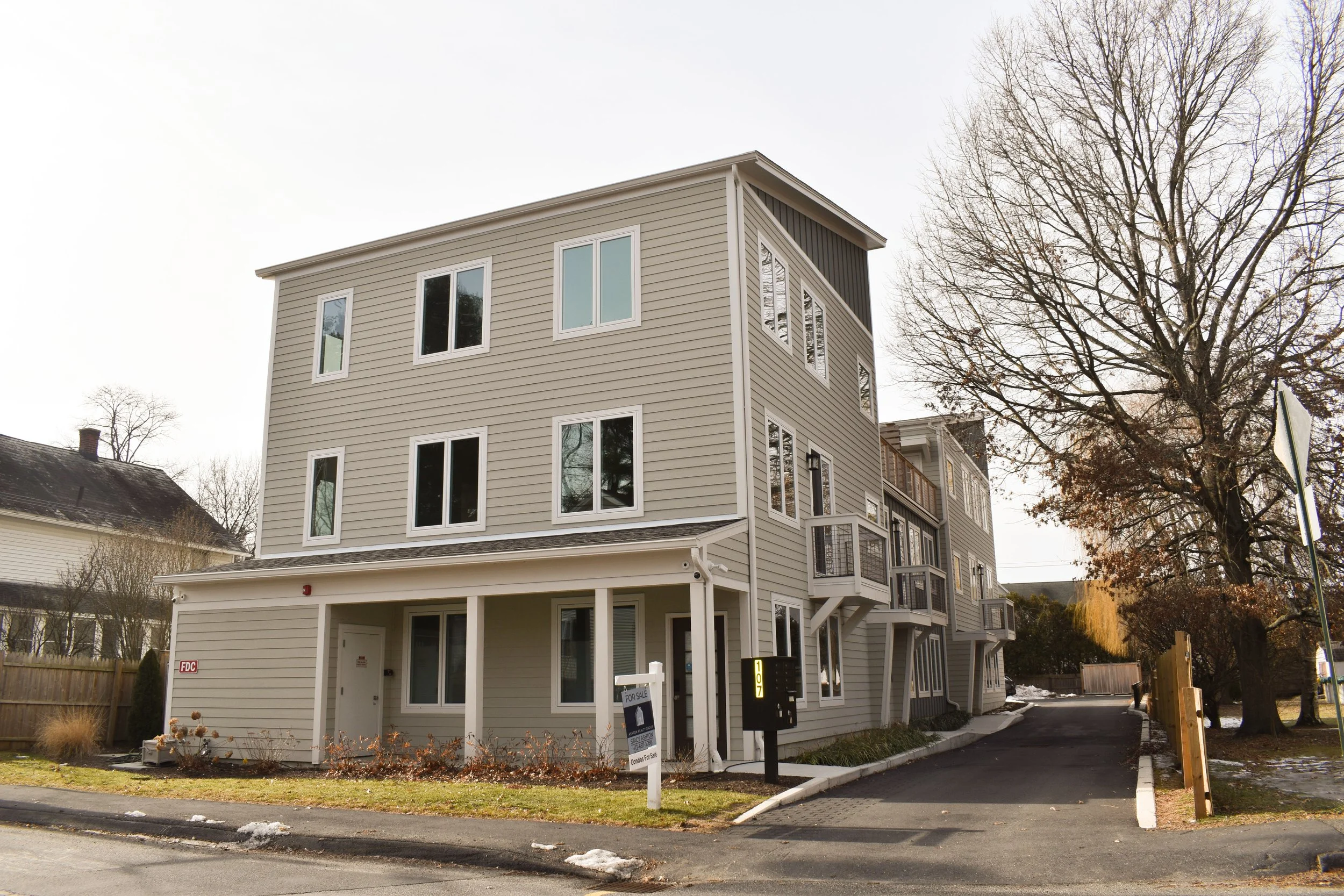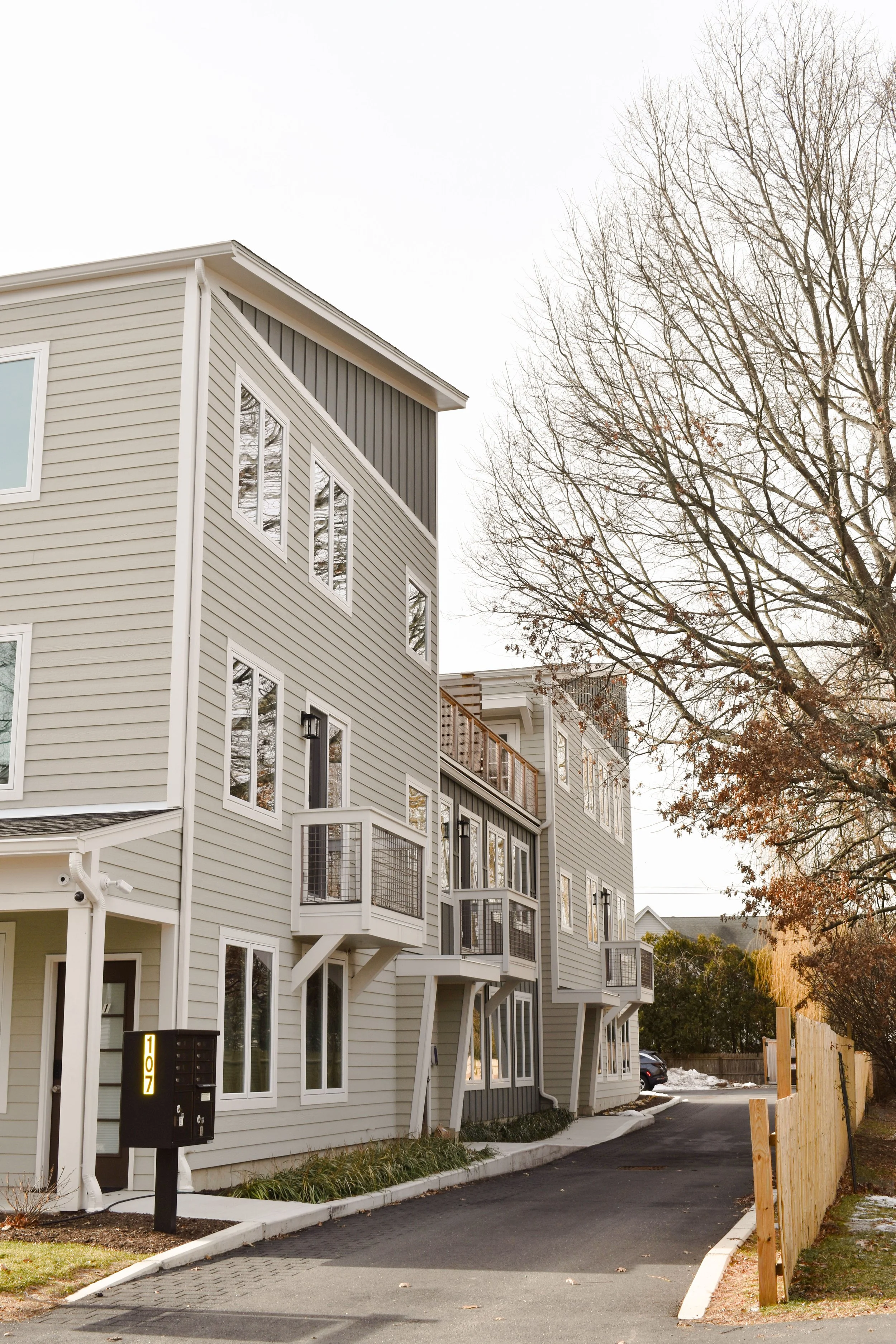 Completed in 2025, this multi-family development near the heart of downtown Northampton is among the first projects approved under the city’s updated zoning ordinance, which aims to promote thoughtful infill and better use of underdeveloped parcels close to downtown. The new three-story building includes eight energy-efficient, “half-scale” residential units, each measuring 800 square feet or less. Residents enjoy amenities such as private parking, a shared roof deck, and patio space, all just steps from downtown shops, dining, and cultural destinations.