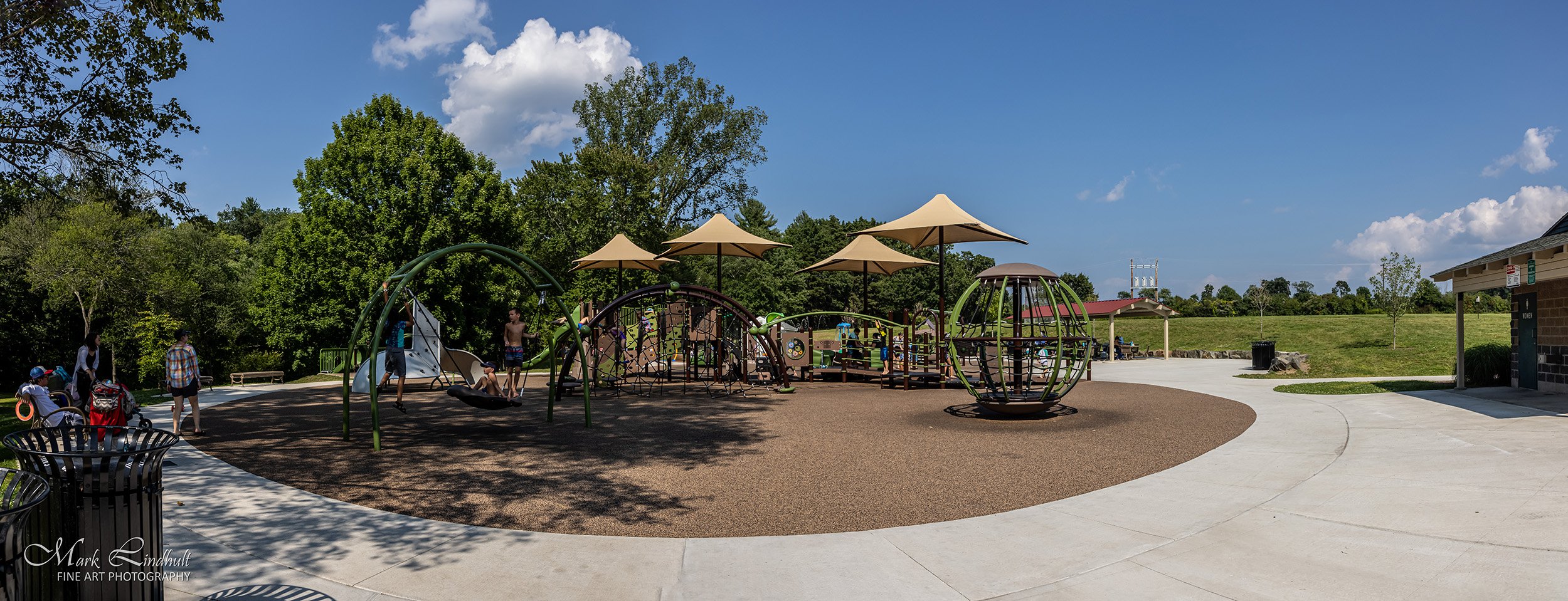 The project incorporates a new splashpad, with age-appropriate play equipment and water features grouped together. The playground and splashpad are fully accessible with rubberized surfacing. The park includes a custom shade sail structure and a new picnic pavilion just off of the play and splash pad areas, making it easy for families to watch and spend more time socializing. Stormwater gardens and perennials can be found around the periphery of the park.