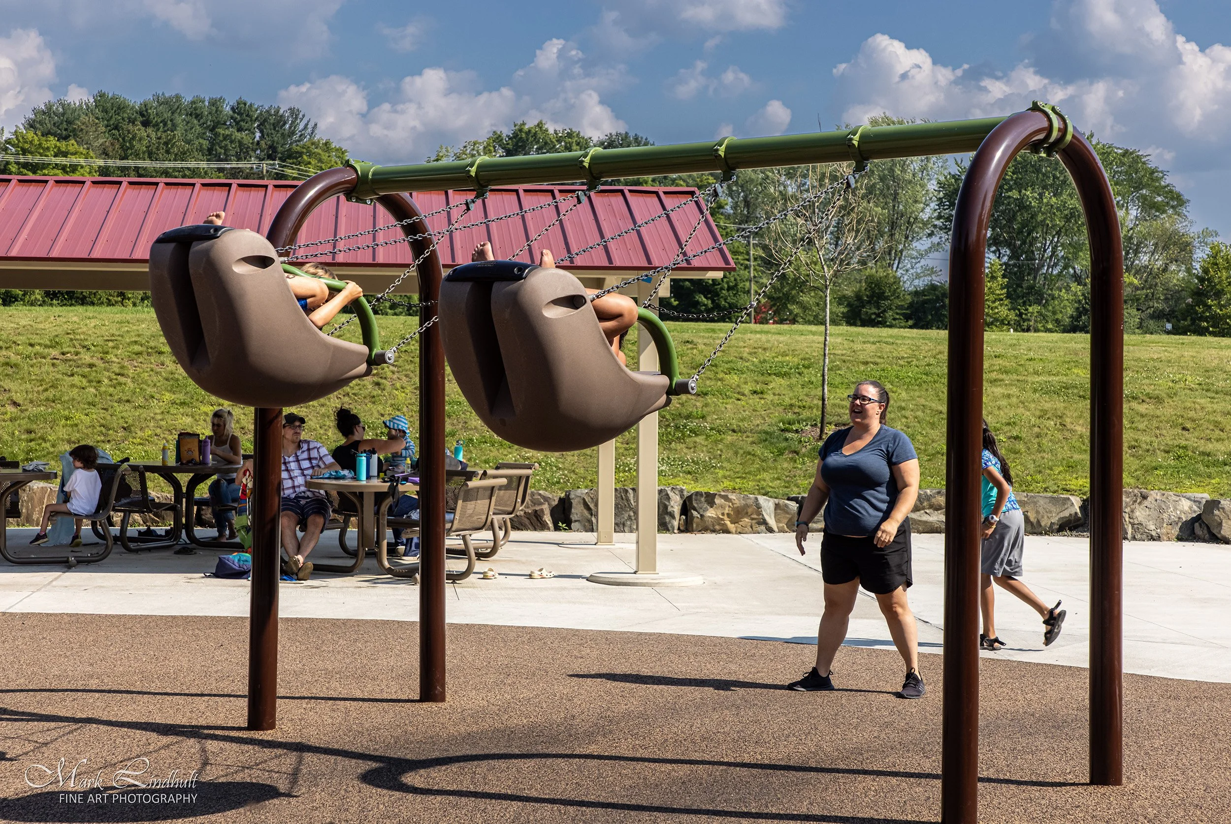 In addition to the new playground elements, the existing larger park still includes access to the Mill River, and 0.9 mile Emily Dickinson Trail, picnic tables, pavilions, and sports fields. A variety of seating options include benches, picnic tables and a stone seat wall comprised of locally sourced stone.
