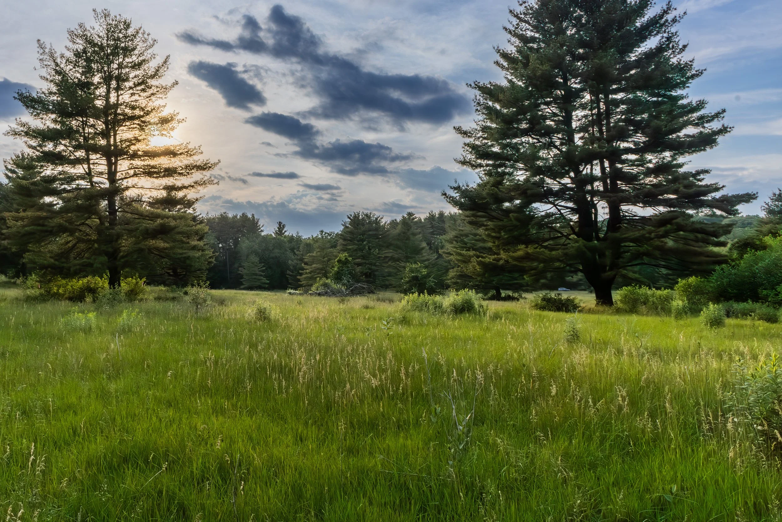 A visionary effort by the City of Northampton to transform the existing 118 acre Pine Grove Golf Course into 105 acres of successional meadow. This forward-thinking approach serves as a model for other golf courses around the country. The project abandoned highly manicured maintenance regimes and leveraged small scale incisions to shift the bluegrass greens into native meadows and wildlife habitat. The remaining 13 acres, previously developed was re-purposed into single-family home parcels, leaving the 105 acres intact and contiguous for wildlife and public benefit. The Pine Grove Parkland builds upon the gently rolling terrain, enhancing the existing network of cart paths and drainage infrastructure, weaving together a system of public trails throughout the property. The Pine Grove trail system continues beyond the parcel, connecting to adjacent trails associated with a larger City of Northampton Greenway system, an impressive localized constellation of connected conservation lands. Stormwater features were assessed for their flood capacity and habitat value. A former irrigation pond was allowed to return to its original stream course and flow freely through the property. The project preserves original shade trees associated with the golf course, and will allow the meadow areas to showcase a natural successional transition from meadow into forest. Within the interior of the parcel, there are test plots with multiple species of trees to study forest succession dynamics and specific species resiliency as climate continues to shift locally. The park, located off of Old Wilson Road, has become a favorite for walkers, bird watchers, dog walkers, and cross country skiers.