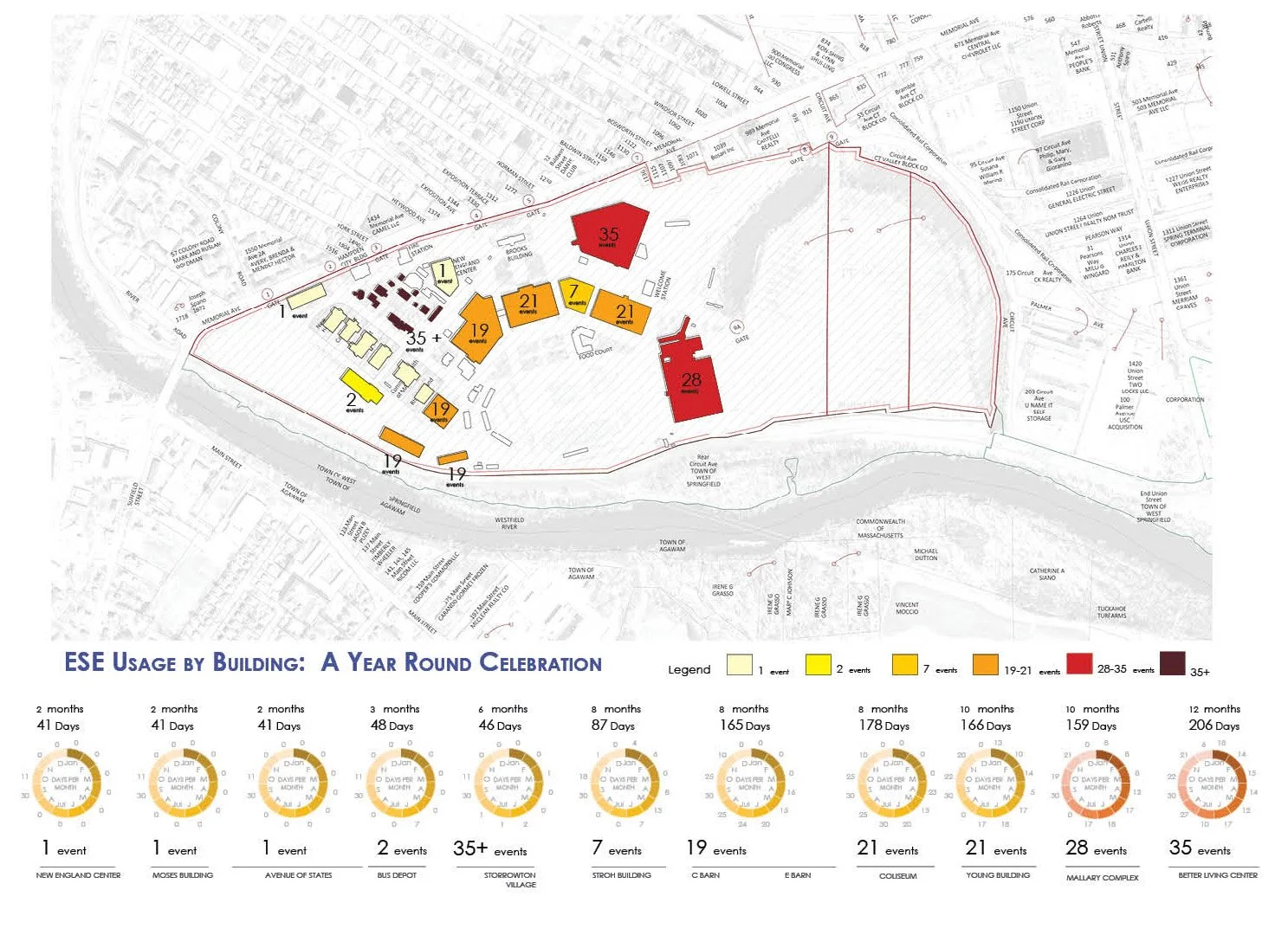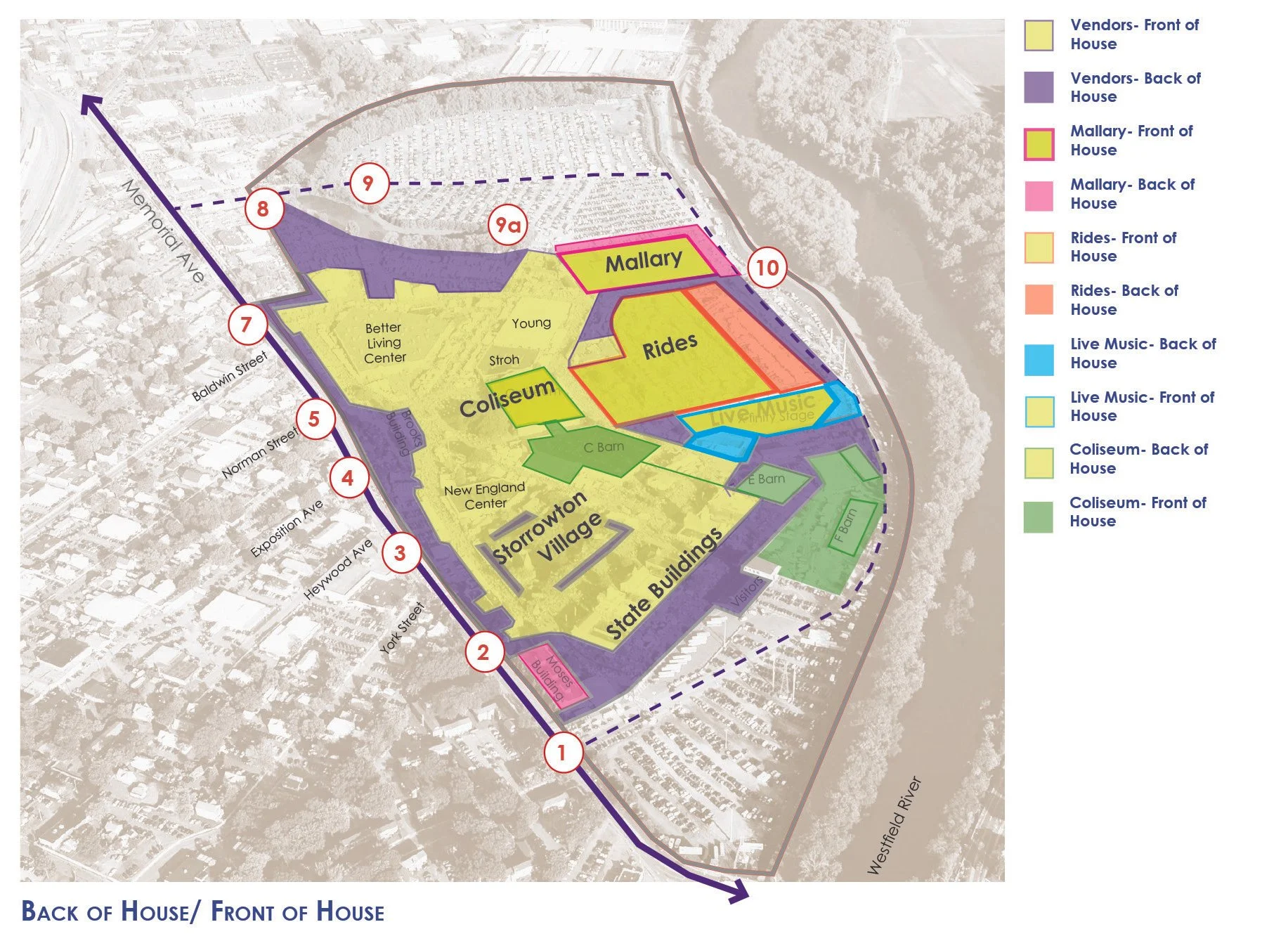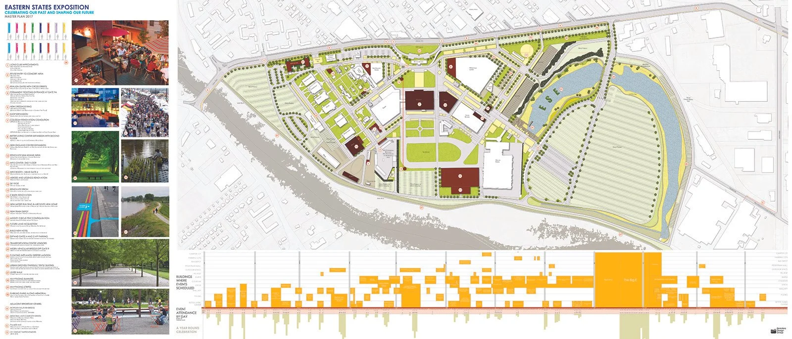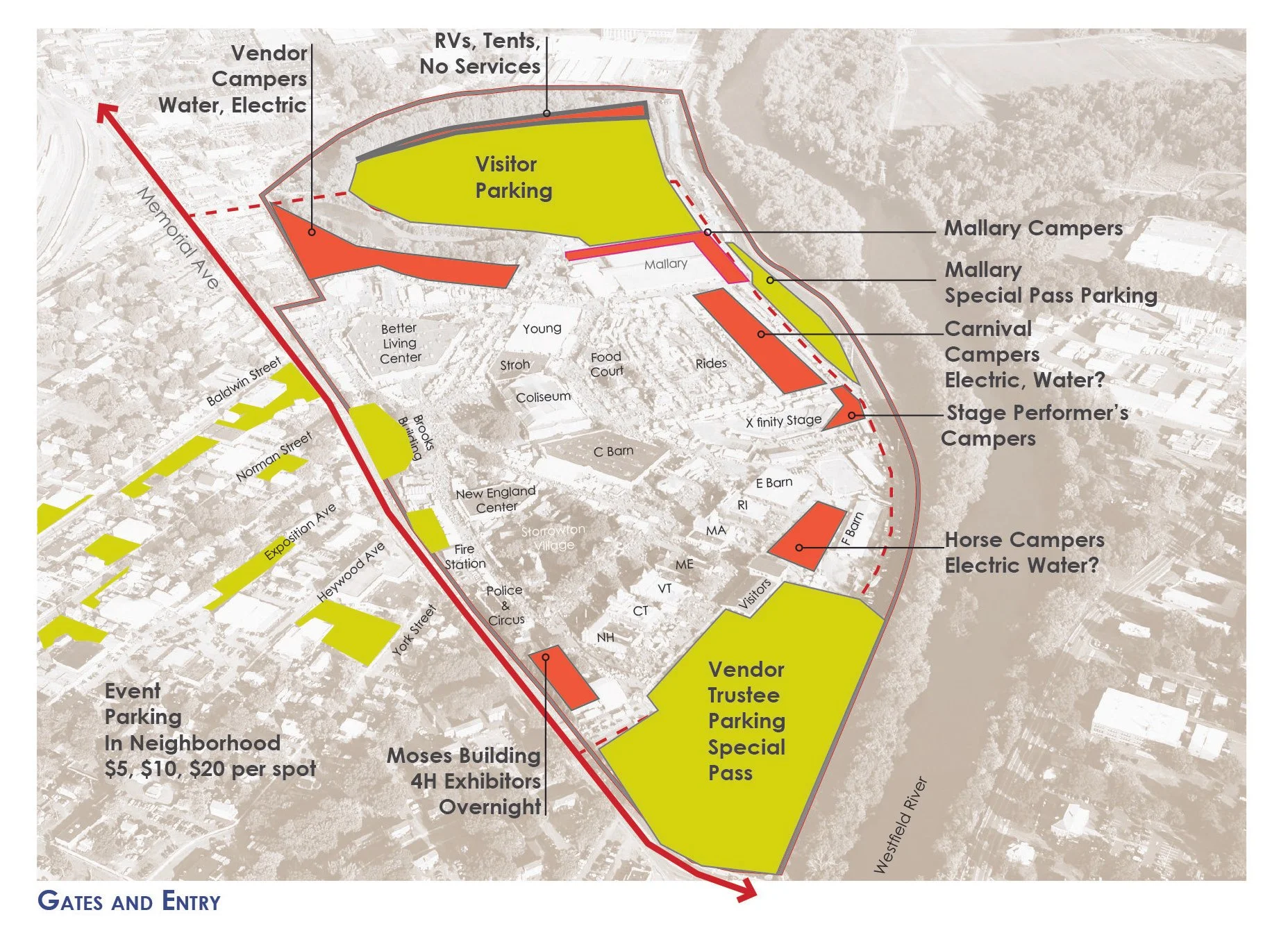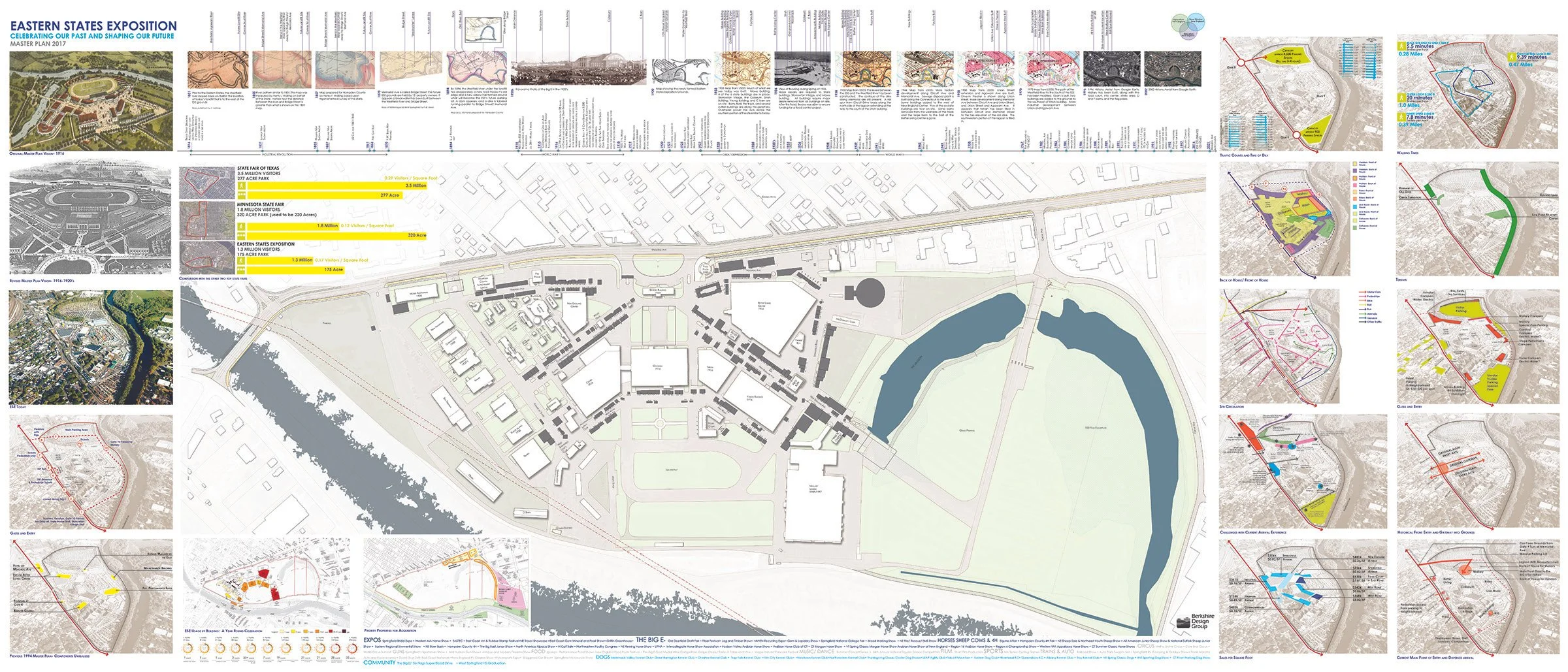 The Eastern States Exposition Campus Master Plan focuses on celebrating the ESE’s past as well as its future. The Campus Master Plan assists the ESE in evaluating their campus’s physical alignment with the organization’s goals and purpose. Working closely at various scales of temporal and spatial analysis, Berkshire Design visited the campus multiple times throughout the calendar year and interviewed event attendees, met with stakeholders, and organizational department heads. Berkshire design reviewed previous planning approaches, the deep cultural history of the exposition grounds, its relationship to New England’s farming and agricultural history, and how that in turn those relationships shaped the initial vision and current realization of the grounds. Working closing with the ESE leadership the team explored alternative configurations, and placement of programmatic elements on campus to increase safety and eliminate animal/ pedestrian/ vehicle conflicts, as well as improve wayfinding, legibility and access during large events and small events throughout the year.