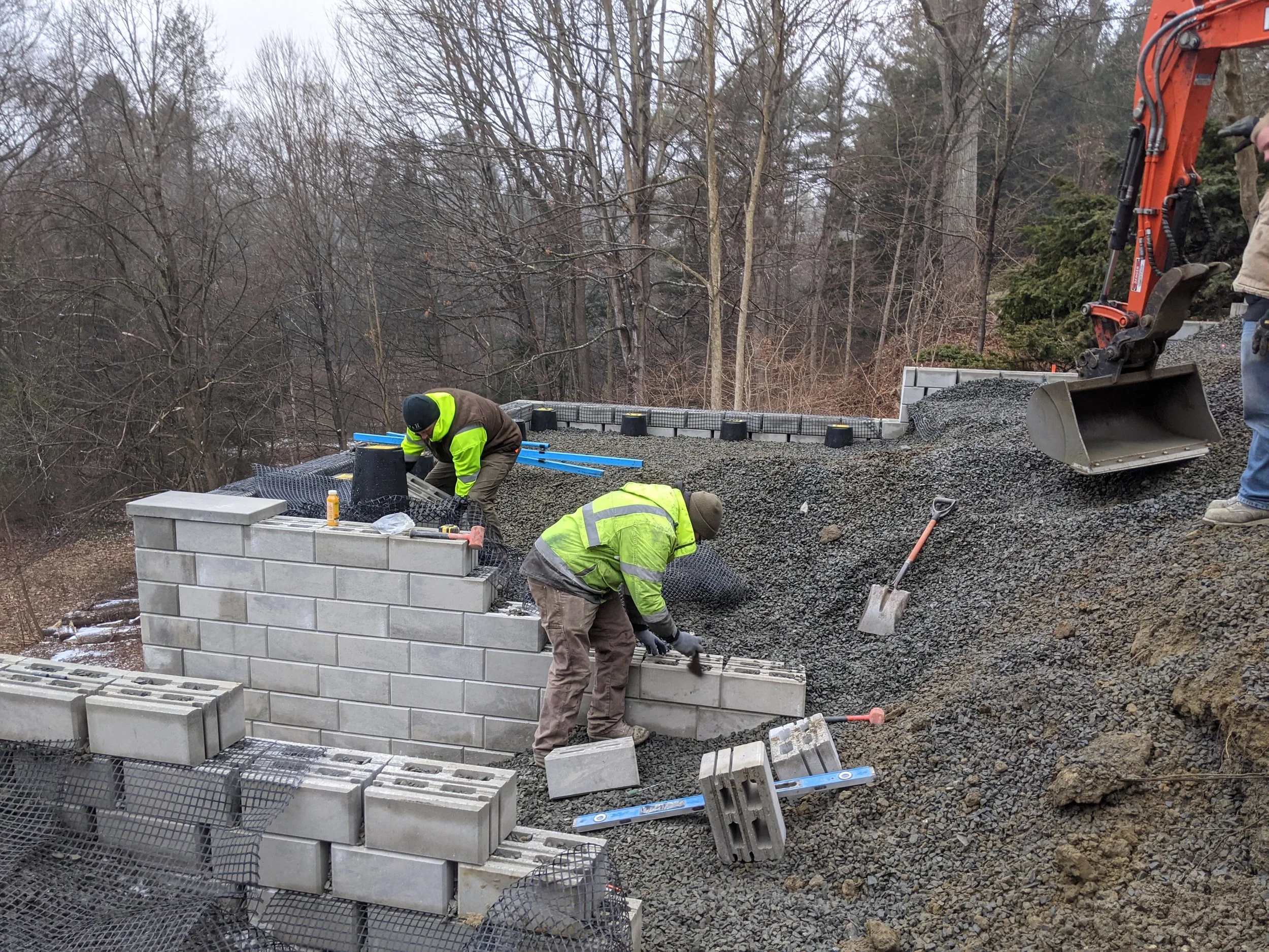 The clients reached out to Berkshire Design Group after one Spring afternoon they watched a tree tumble down their back slope, crown to rootball. The project’s initial request was to address slope stability issues, while creating more layered vegetation between the street and their front door, as well as providing more usable space in their backyard with easier access to the lower level of their yard, and plantings which supported native pollinators.